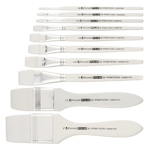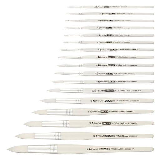 Pro Arte Series 32 Polar Flat Brushes are synthetic brushes designed for watercolour, gouache, and light acrylic work. Made with white nylon fibres...