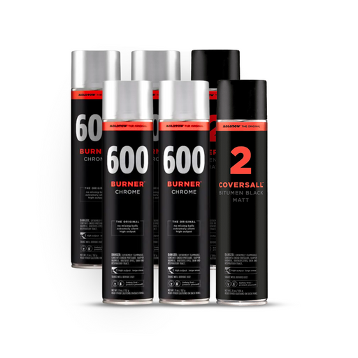 Winter pack includes: 4x Burner Chrome Spray Paint 600ml 2x Coversall 2 600ml
