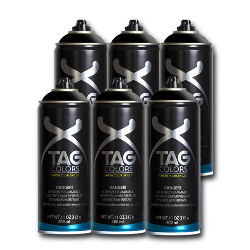 TAG COLORS Black Pack of 6 400ml Unleash your artistic side with our TAG COLORS Black Pack of 6! These 400 ml cans deliver rich, deep black that po...